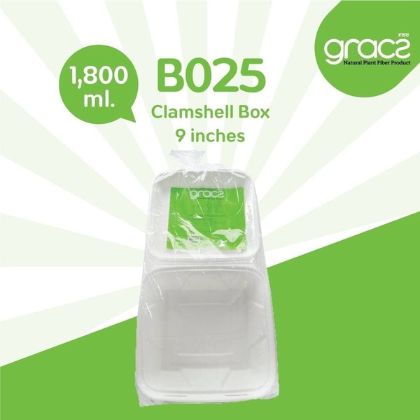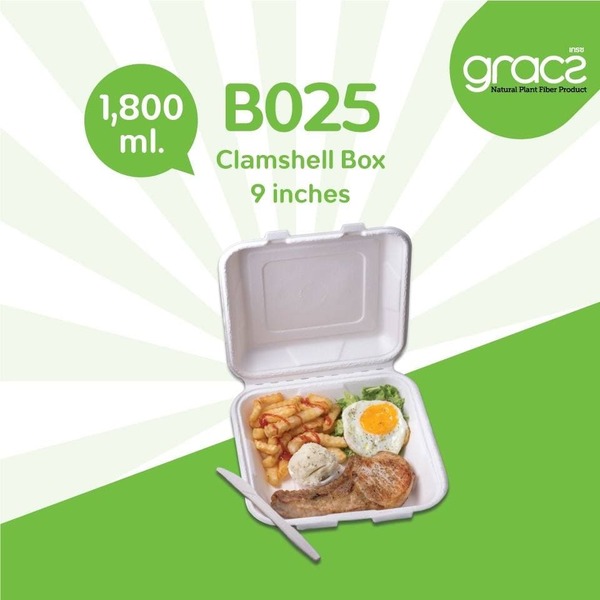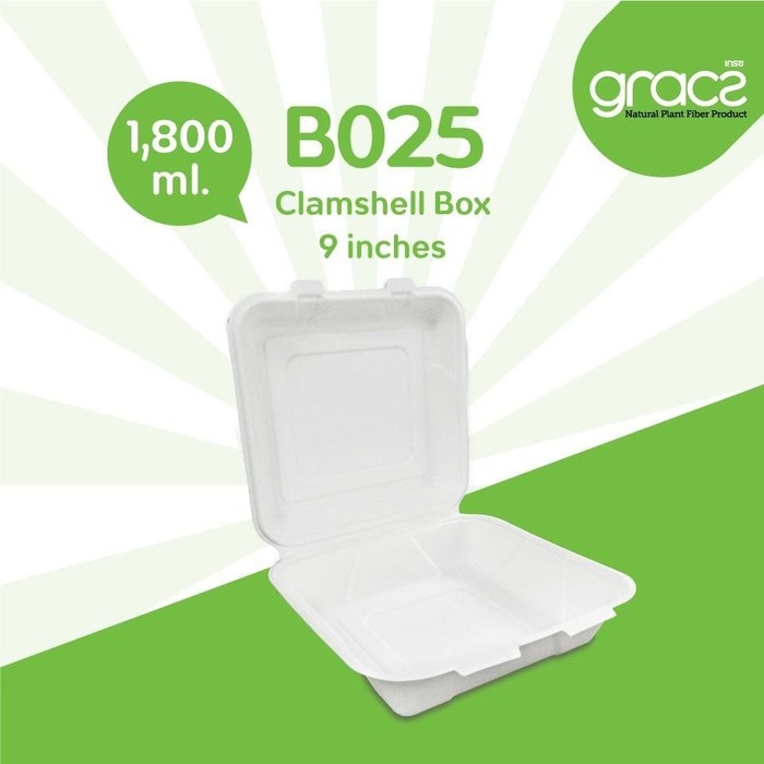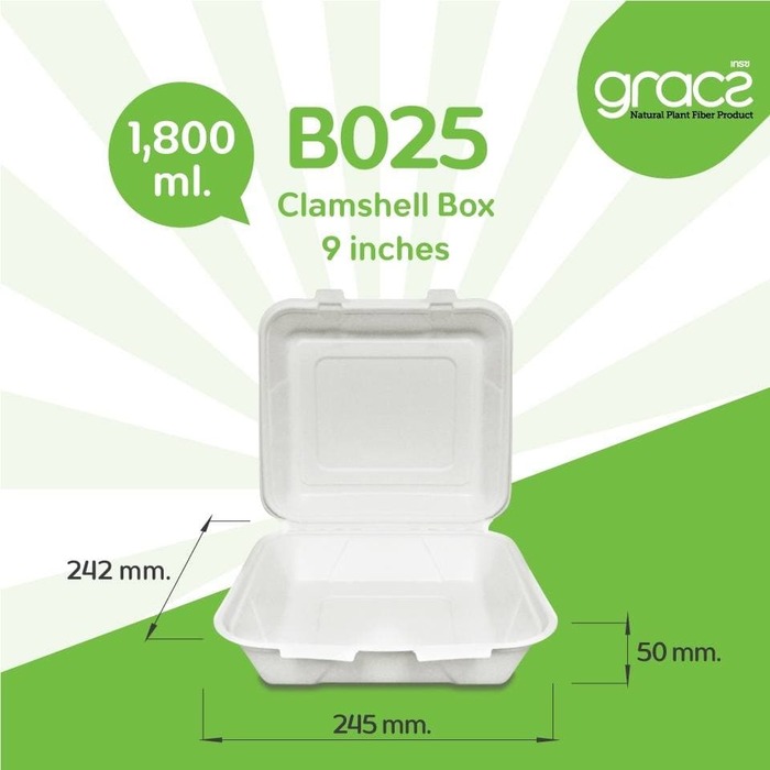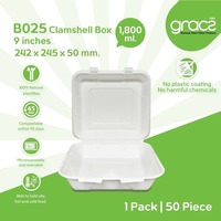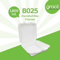 B025 Compostable Clamshell Box 9 inch 1,800ml x 50s