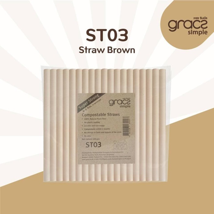 ST03CL Natural Plant Fiber Bubble Tea Straw 12 x 210mm Brownx 100pcs