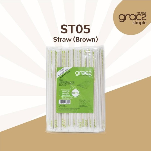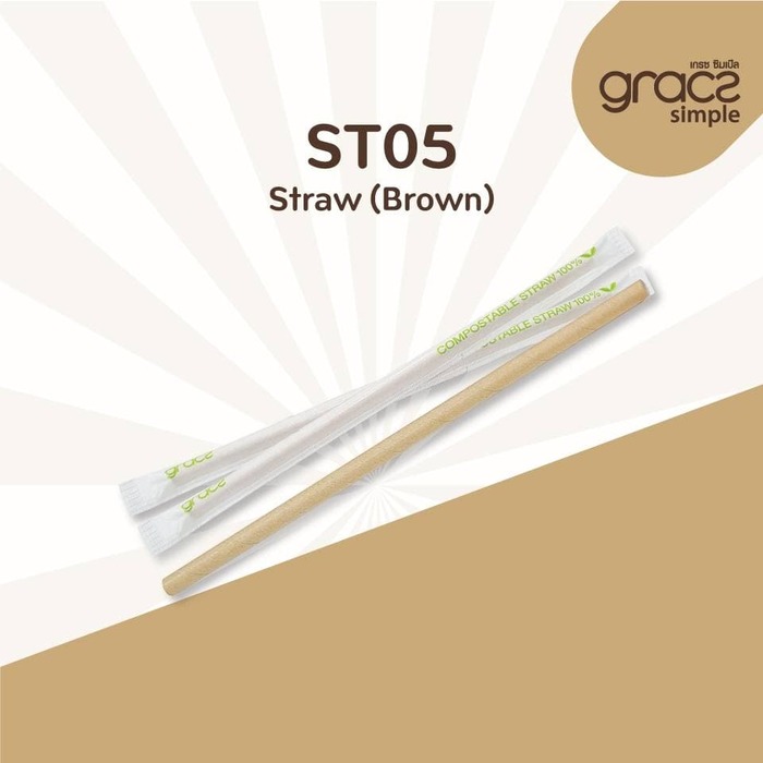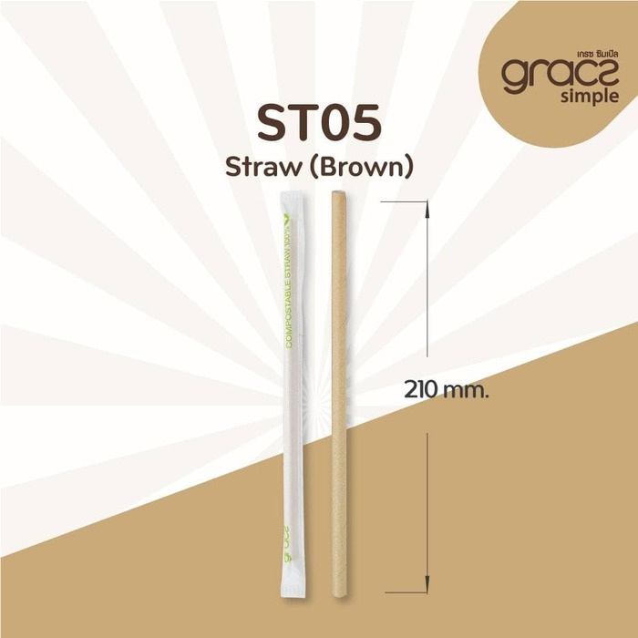 ST05 Compostable Straw/paper wrape 6 x 210mm Brown x 100pcs