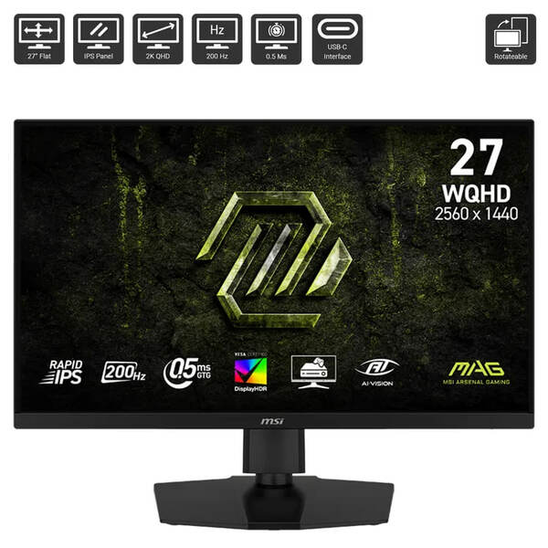 Experience immersive gaming with the MAG 274QPF E20 gaming monitor. It features a 2560 x 1440 (WQHD) panel, a 200Hz refresh rate, and a rapid 0.5ms (GtG, Min) response time. The monitor is VESA DisplayHDR 400, enhancing eye-catching details through adjustments in contrast and shadows. Designed for competitive FPS, first-person RPG/MMORPG, and flight/racing simulator genres, the MSI MAG 274QPF E20 gaming monitor takes casual gaming to a new level, challenging players to see beyond the game.