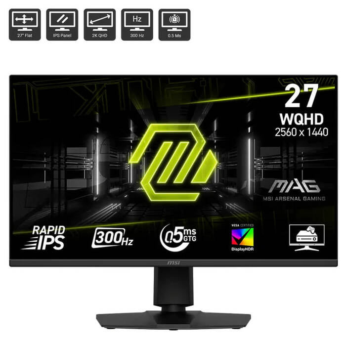 Experience immersive gaming with the MAG 275QPF X30 gaming monitor. It features a 2560x1440 (WQHD) panel, a 300Hz refresh rate, and a rapid 0.5ms (GtG, Min.) response time. The monitor is VESA DisplayHDR 400 certificated, enhancing eye-catching details through adjustments in contrast and shadows. Designed for competitive FPS, first-person RPG/MMORPG, and flight/racing simulator genres, the MSI MAG 275QPF X30 Gaming Monitor takes casual gaming to a new level, challenging players to see beyond the game.