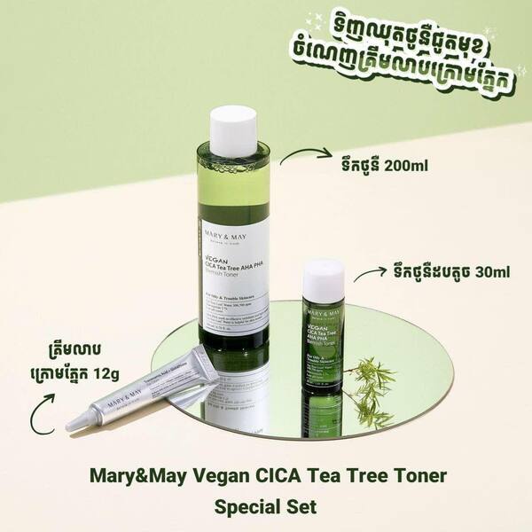 Mary&May Vegan CICA Tea Tree Toner Special Set (200ml+30ml+Eye cream 12g)
