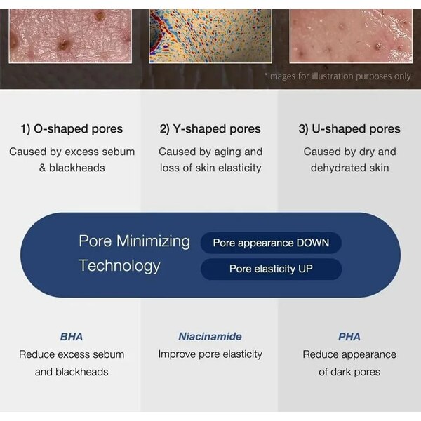 - មាន 1% AHA សម្រាប់ជម្រុះកោសិកាចាស់ៗខាងក្រៅបែបកម្រិតស្រាល, 0,2% BHA កាត់បន្ថយប្រេងនៅលើស្បែកនឹងសំអាតបានជ្រៅក្នុងគល់រន្ធ, 14% PHA បណ្តុះកោសិកាថ្មី ផ្សិតរន្ធញើស នឹងការពារការរលាករោលនៃស្បែក (Safe for sensitive skin)