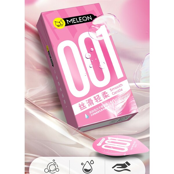 Meleon 001 Smooth Pink Condom ស្រោមអនាម័យស្តើង001រលោង ទឹករំអិលច្រើន (10pcs)