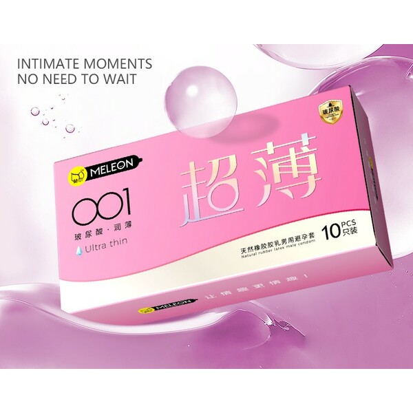 Meleon 001 Ultra Thin Pink Condom ស្រោមអនាម័យ001រលោង ទឹករំអិលច្រើន (10pcs)