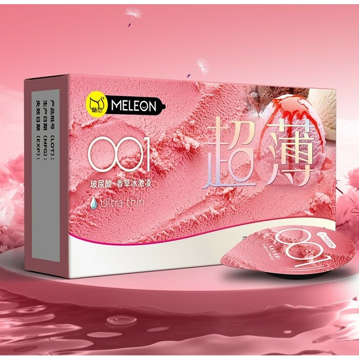 Meleon 001 Vanilla Ice Cream Condom ស្រោមអនាម័យស្តើង001 ក្លិនការ៉ែមវ៉ានីឡា (10pcs)