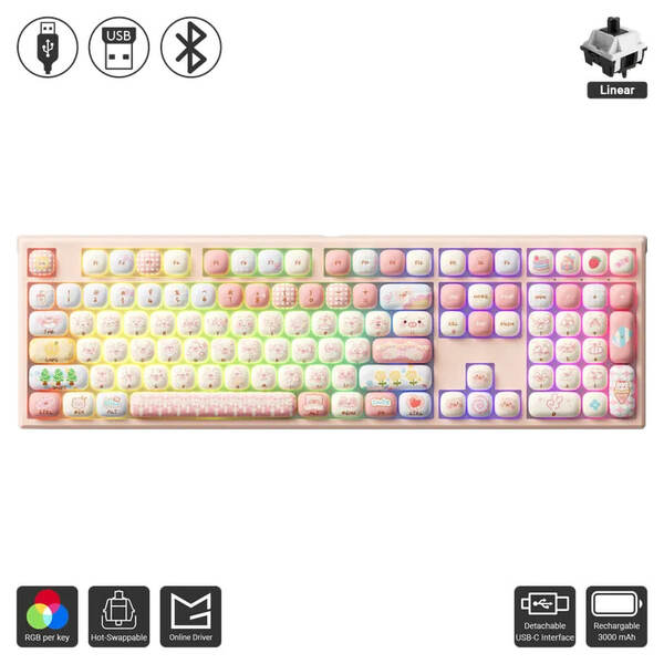 - Multi-device & Wireless: MG108B mechanical keyboard can be connected to multiple devices through Bluetooth 5.0, Multi-host 2.4Ghz (with a receiver), and wired Type-C mode with easy switch