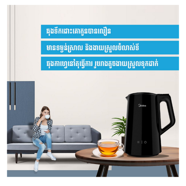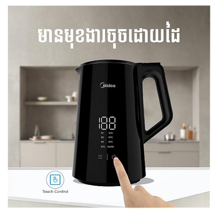 VMALL Midea Kettle 1.5L, Cool Touch, Temperature Control, Inner Gapless - MKE150D2ADKH