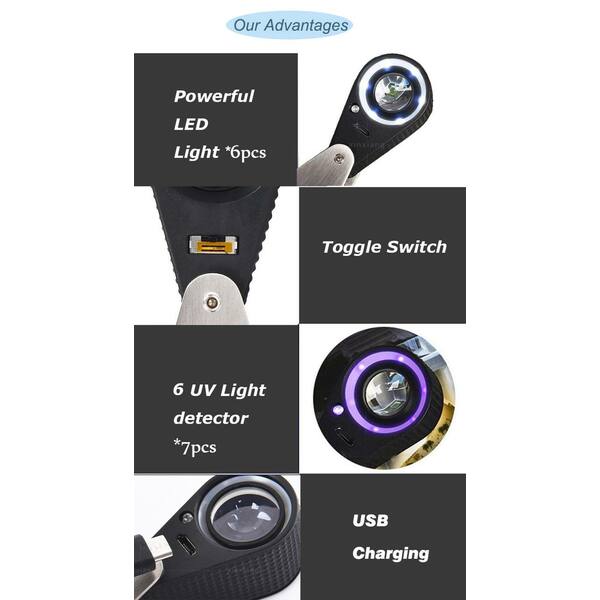 Mini 10X Jeweler Loupe Magnifier + LED & UV light, 22mm lens