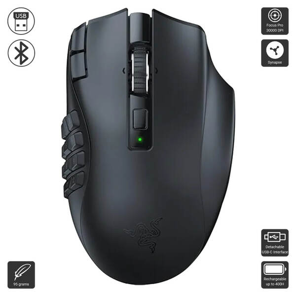 - Long Battery Life: With up to 400 hours on Bluetooth and 250 hours of seamless low-latency gaming on Razer HyperSpeed Wireless (2.4GHz), last longer in the heat of battle with this mouse before having to replace its battery