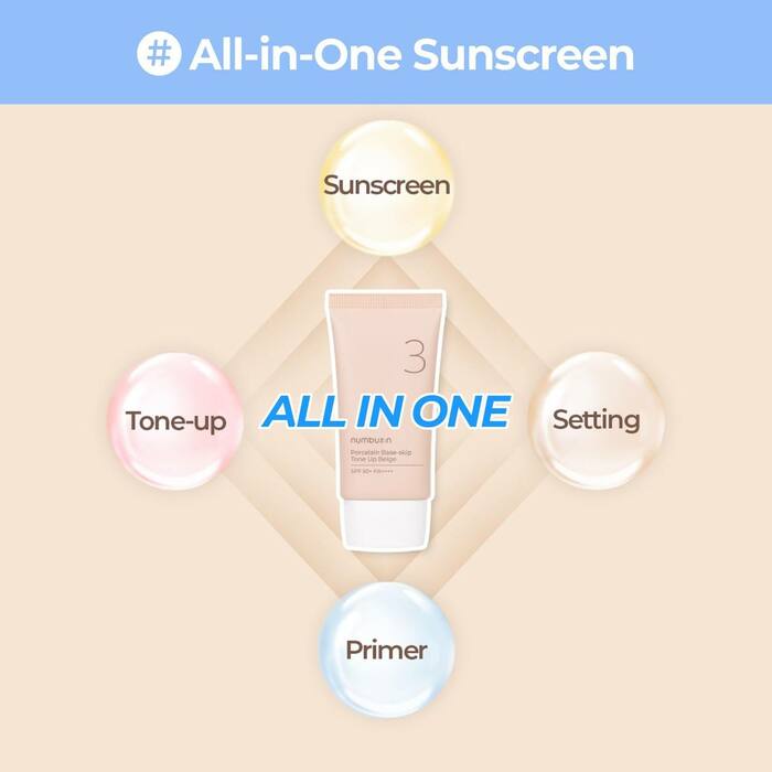 Numbuzin Porcelain Base Skip Tone Up Beige SPF 50+ PA++++