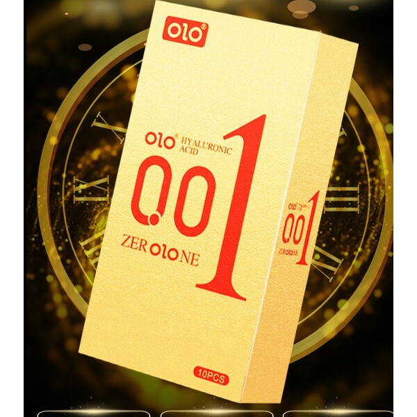 OLO 001 Longbox Gold Condom ស្រោមអនាម័យគ្រើម ឆ្នូត (10pcs)