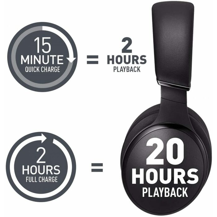Bluetooth Wireless Convenience – built-in mic & multi-function button to answer calls, adjust volume, and activate your smartphones voice assist; 20 hours playback on full charge + 15min quick charge
