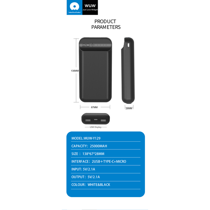 Power Bank WUW Y129 25000mAh - Black (BC9299)