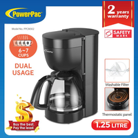 POWERPAC PPCM302 Coffee Maker With Drip Style Coffee Machine 1.25L
