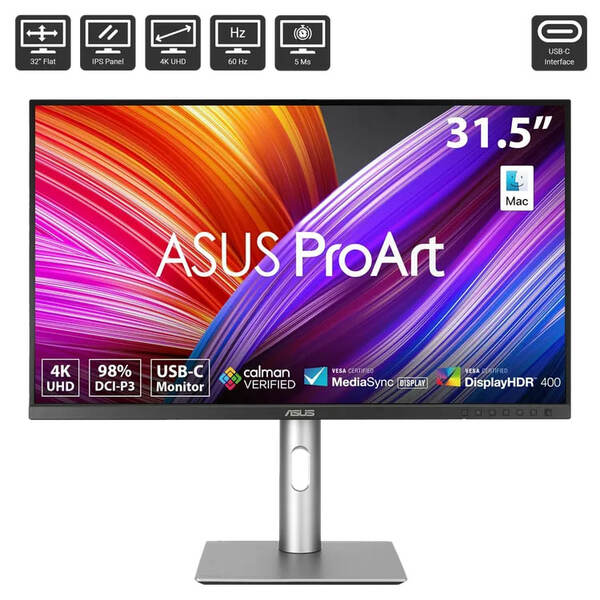 ASUS ProArt Display PA329CRV Professional Monitor – 32-inch (31.5-inch viewable), IPS, 4K UHD (3840 x 2160), 98% DCI-P3, Color Accuracy ΔE < 2, Calman Verified, USB-C PD 96W, VESA DisplayHDR 400, VESA MediaSync, Ergonomic Stand, Green Sustainability