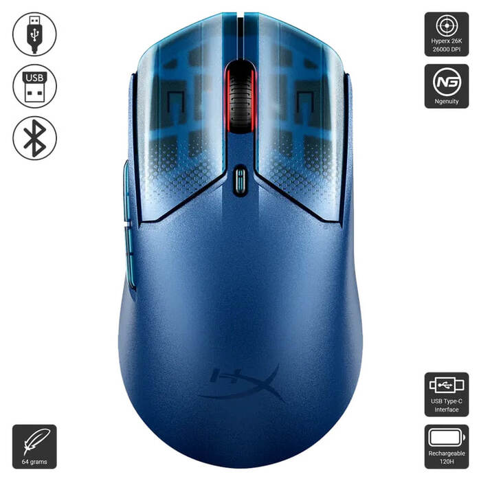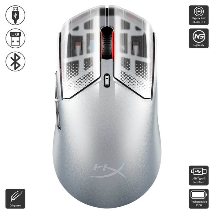 - Easy Customization with NGENUITY Software Set custom DPI levels up to 26k, adjust RGB colors and patterns, and reassign up to 5 mouse buttons. Make your mouse truly your own with HyperX NGENUITY software.