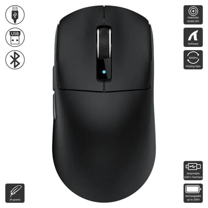 39g SUPERLIGHT Mouse, PixArt PAW3950MAX Gaming Sensor, Nordic 52840 Chip, DPI up to 42000, 8000Hz Polling Rate, Ice-feeling Coating