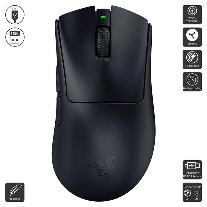 The GOAT of esports mice returns in true winning form. All hail the Razer DeathAdder V3 HyperSpeed. From its ultra-lightweight ergonomics to top-tier wireless response, go for glory with a mouse that’s the winning pick for the world's best players.
