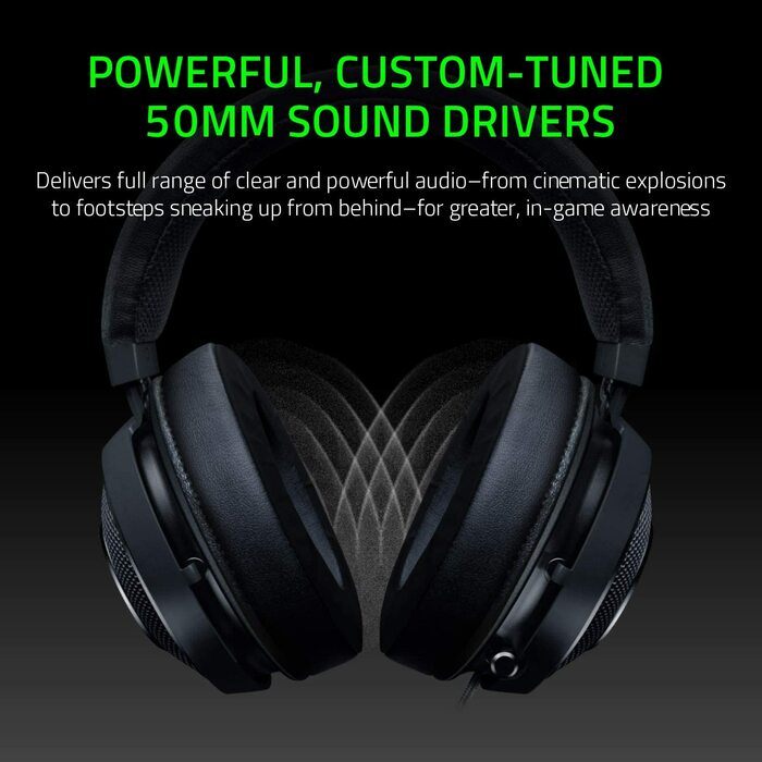 Razer Kraken Tournament Edition THX 7.1 Surround Sound Gaming Headset: Retractable Noise Cancelling Mic - USB DAC - For PC, PS4, PS5, Nintendo Switch, Xbox One, Xbox Series X & S, Mobile – Black