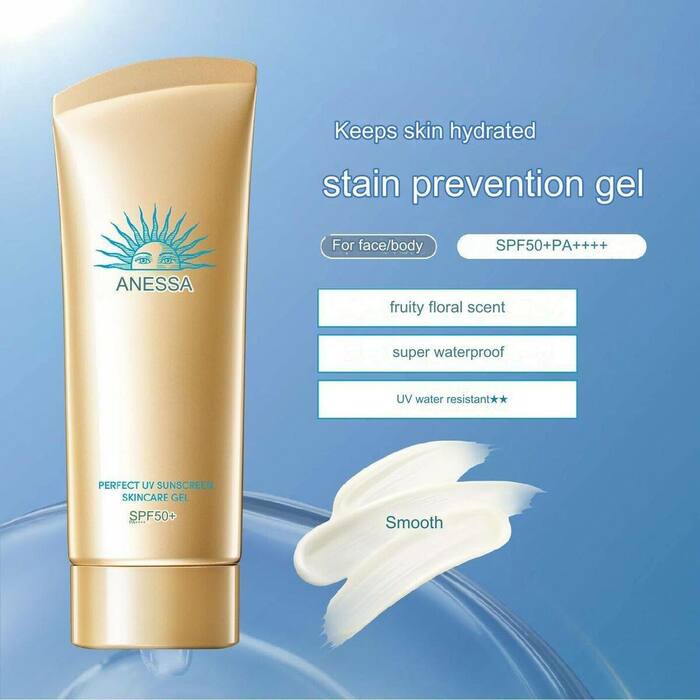 - ANESSA Perfect UV Sunscreen Skincare Gel (ត្រូវបានគេស្គាល់នៅក្នុងប្រទេសជប៉ុនថាឡេការពារកំដៅថ្ងៃនៅពេលដែលប្រេីប្រាស់មានអារម្មណ៍ថា fresh ( ពពួក everyday or indoor sunscreen)