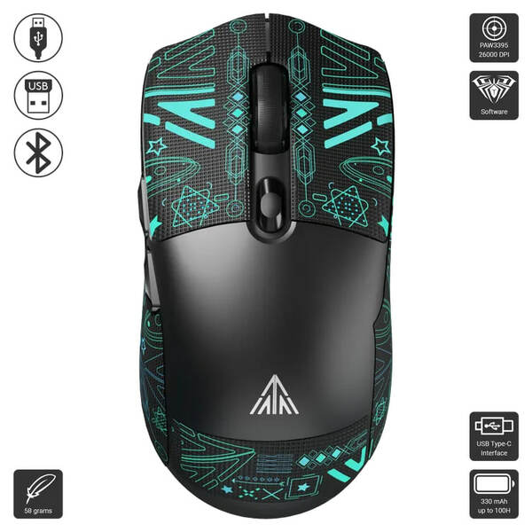Wireless Gaming Mouse, 26,000 DPI,58g Ultra-Lightweight Tri Mode Type-C Wired/BT/2.4GHz Wireless Mouse,Programmable Buttons,Compatible with PC/Mac/Laptop