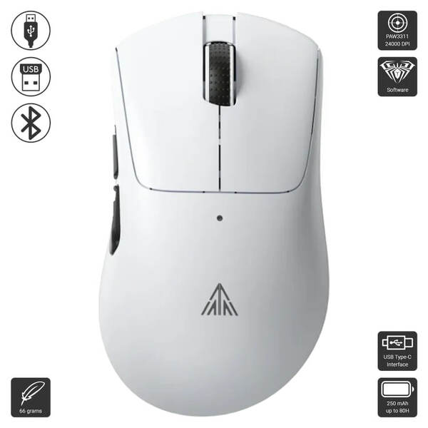 - Lightweight Ergonomic Design: Weighing only 66g, the mouse offers an ergonomic, lightweight build for comfort during long gaming sessions or extended work periods.