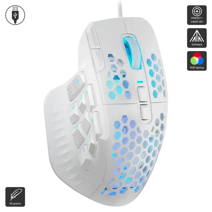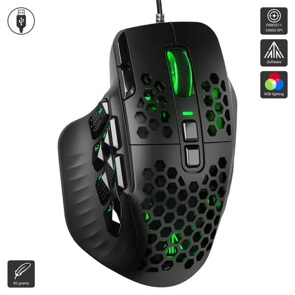 The SOLAKAKA SM809 Wired MMO Gaming Mouse features a high-precision 24,000 DPI sensor, 16 programmable buttons with swappable side plates, fast 1,000 Hz polling, and customizable RGB lighting—all in a lightweight ergonomic design built for MMO and competitive gaming.