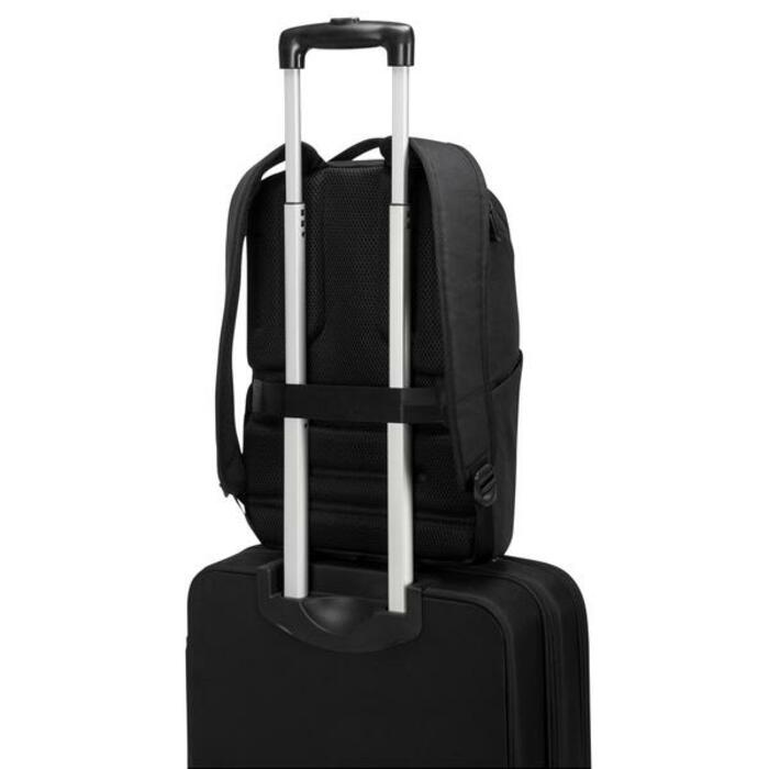 Made from recycled materials inside and out. Using fabric woven from recycled water bottles, 20 to be exact, the 15.6” Cypress Slim Backpack with EcoSmart® is thoughtfully designed to protect your work essentials while also protecting the environment. Built to fit 15.6” laptops, this EcoSmart bag features a dedicated padded compartment to cradle your laptop, plus a generous main compartment and secondary compartment with a workstation, and a convenient front quick-stash pocket to provide enough room for your everyday essentials. Its smart design also features adjustable, ergonomic shoulder straps and a padded back panel to ensure a comfortable fit, as well as a pass-through trolley strap for easy transport on luggage.