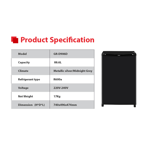 VMALL TOSHIBA Refrigerator Single Door Non-Inverter 88.6L GR-D906D(MG)