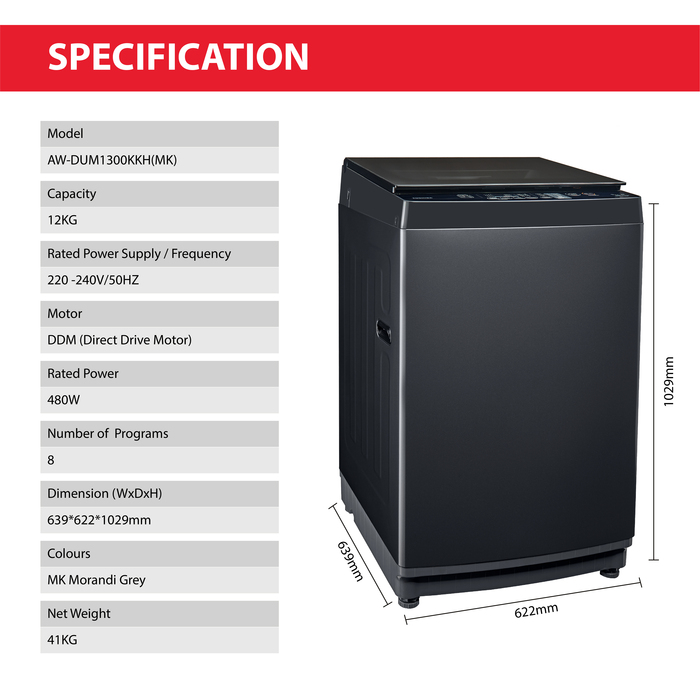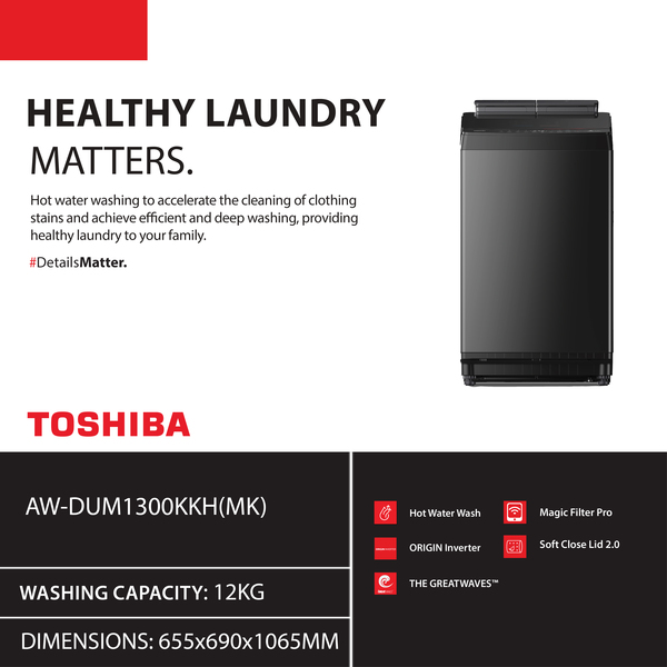 VMALL TOSHIBA Washing Machine Top Loading Inverter 12KG AW-DUM1300KKH(MK)