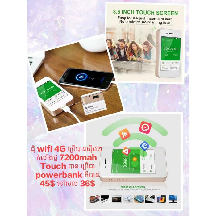 Touch Screen Modem 4G 2 Sim With Power Bank 7200mah