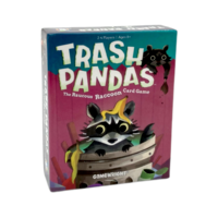 "Raccoons collect the best trash for their food stash. 2–4 Players | 15–20 Min | Age: 8+. In Trash Pandas, players are raucous raccoons, tipping over trash cans for food (and shiny objects). Players push their luck to acquire more cards, but must stash them in order for them to count as points at the end of the game. When the deck runs out, the game ends and players compare their stashes to see who has the majority for each card type and score points accordingly. The player with the most points wins! In more detail, on a turn the active player rolls a die in the hope of gaining the benefit of the roll result. With each roll, the player decides to keep rolling or stop and activate the dice results. However, with each additional roll, the odds of busting (getting a duplicate result) increase further and the player risks losing the progress they've made that round. When activating the dice results, the player will draw cards, steal cards from other players, and stash cards. Cards in hand may be used for their listed ability, but they count as points only when stashed. —description from the publisher"