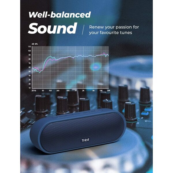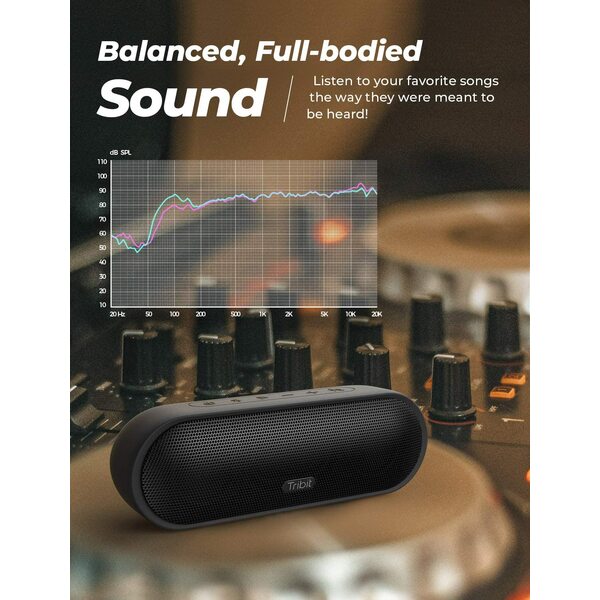 Bass that Booms - MaxSound Plus Sound is all about big bass vibes. Tribit's exclusive XBass technology with world-class low-frequency drivers and DSP algorithm tuned to maximize bass frequency output while preserving its mix accuracy.