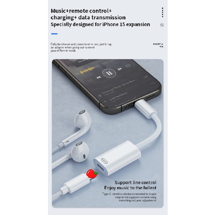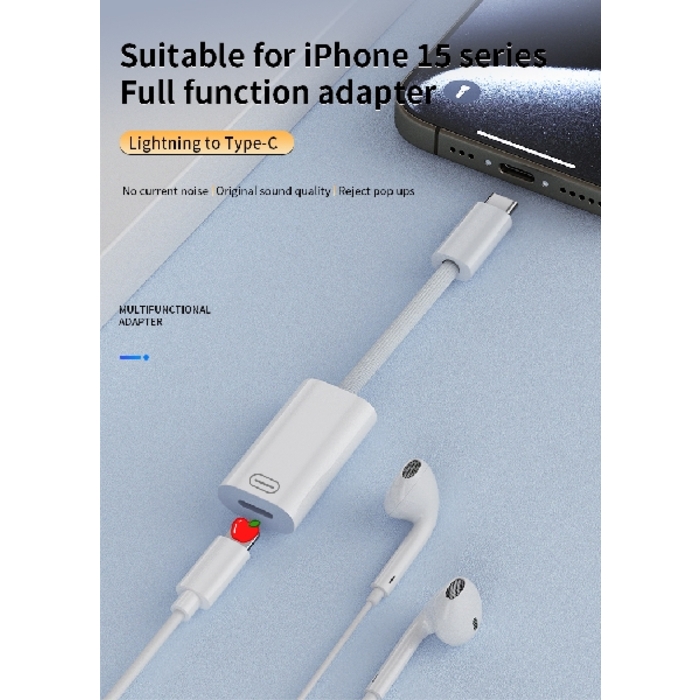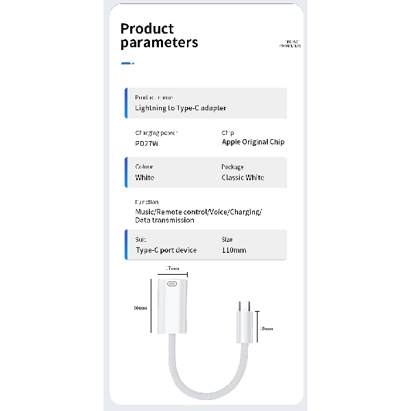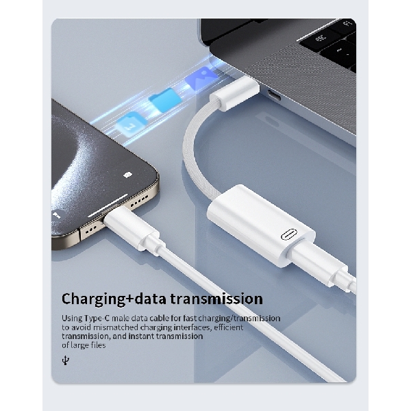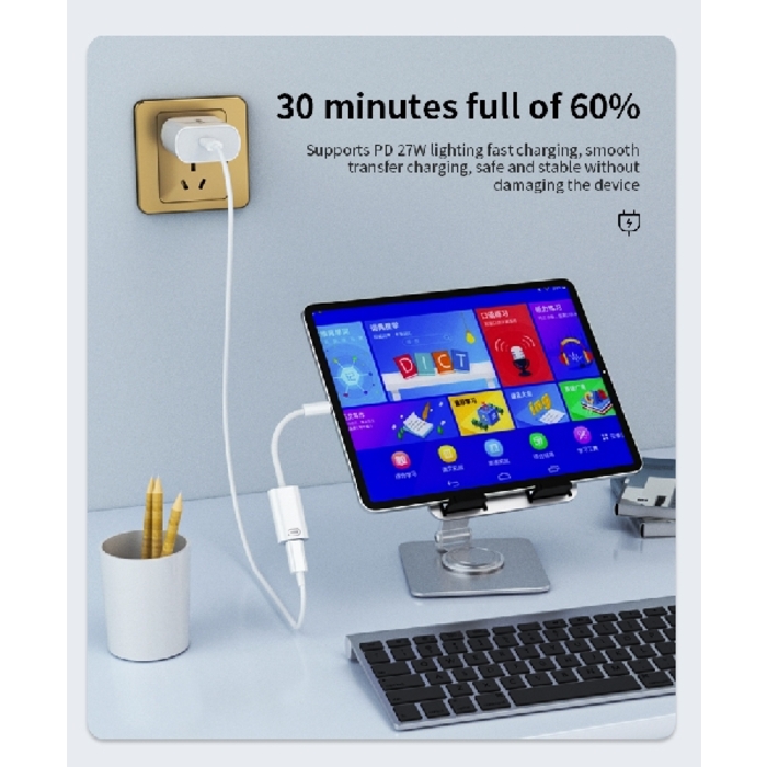 USB C to Lightning Adapter Support Data Transfer/Music/Call/Game/PD 27W Fast Charge - White