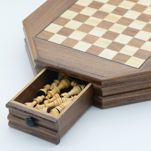 Wooden Chess Set Non-Folding Board 33cm Hexagon