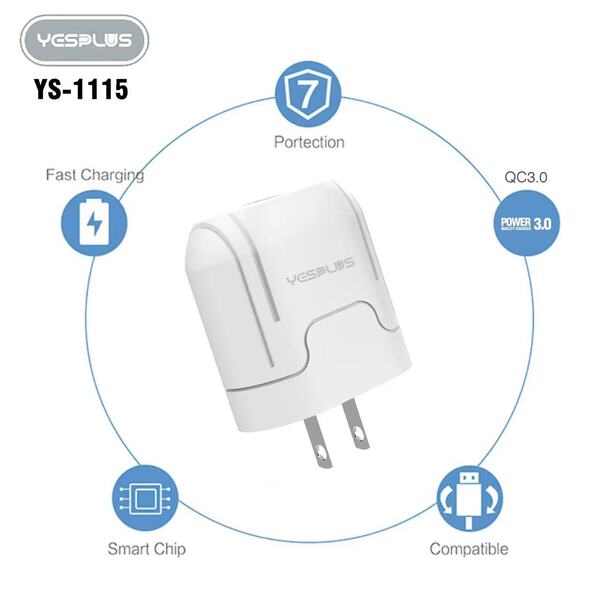YESPLUS SMART CHARGER & FAST CABLE 18W+QC 3.0 CHARGER White - iPhone- 1set