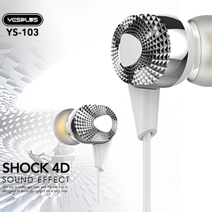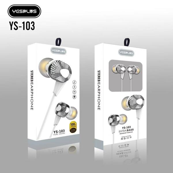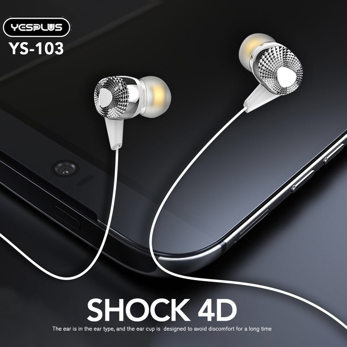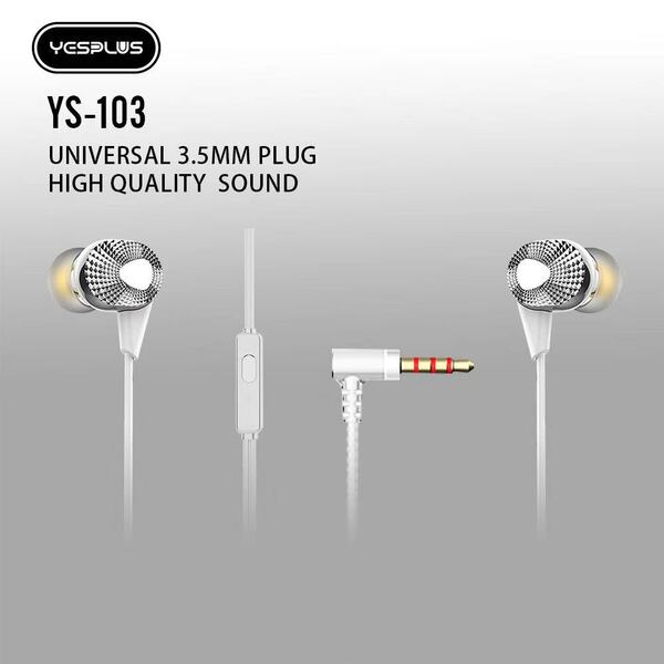 YESPLUS_YS-103-EARPHONE PURE SOUND Hi-Res AUDIO EXTRA BASS/White/1pcs