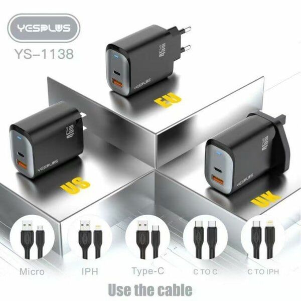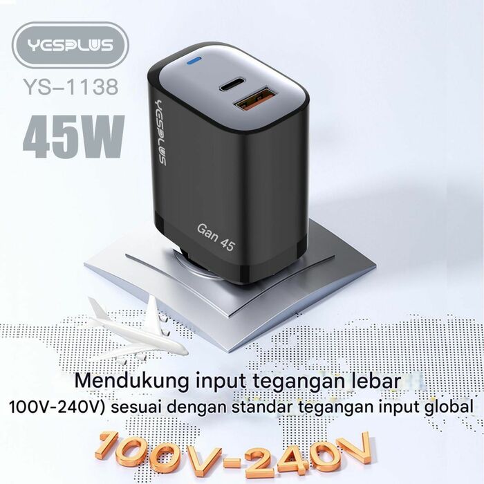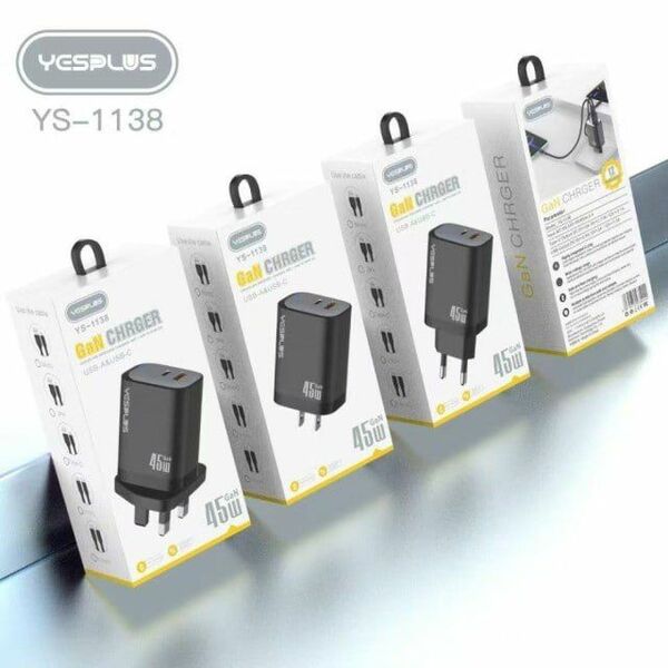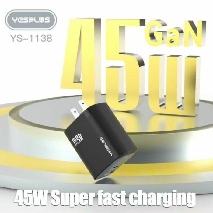 YESPLUS_YS-1138# 45W GaN CHARGER USB-A&USB-C Widely Compatiable/Black/1pcs