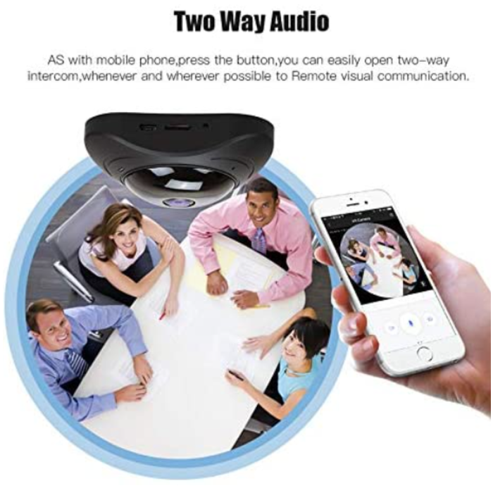 Phone Control WiFi Camera - The HD Fisheye IP Camera can be controlled by a phone. Let you know the real-time condition in your house when you are outdoors. 360° Viewing Angle - This Panoramic Fisheye Camera give you a full vision. Let you control whole situation in the house.
