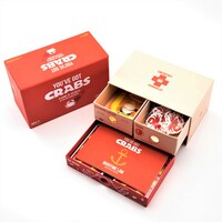 When you have 4 of the same Crab Card, you can't say anything out loud. Instead, when you’re ready, give your secret signal to your teammate. When they notice, they will point at you and shout, 'YOU’VE GOT CRABS!' If they’re right, your team gets a point. If they’re wrong, your team loses a point. However if a player on another team suspects you’re passing a signal, they can point and shout, 'YOU’VE GOT CRABS!' If they are correct, they steal one of your points. If they are incorrect, steal a Crab Token from the accusing player. The game is over when the last Crab Token has been taken from the Crab Pot. At that point, all teams should count up their combined Crab Tokens. The team with the most Crab Tokens wins."