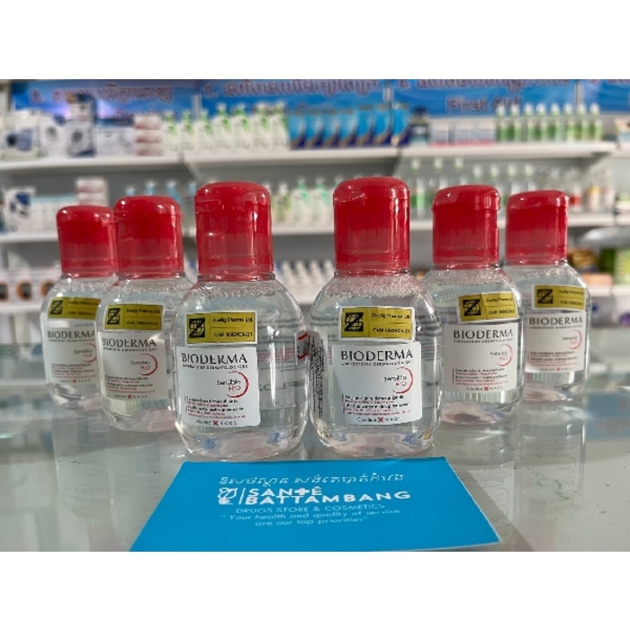 ជាទឹកជូតមុខ ជូតសម្អាត Makeup ឬអាចប្រើជា Toner។ ស័ក្តសមសម្រាប់មុខរោល ប្រតិកម្ម ស្បែកខ្សោយ ជួយកាត់បន្ថយការក្រហម រោល និងធ្វើឲ្យស្បែកមានសុខភាពល្អ។ ប្រើបានទាំងបរិវេនជុំវិញ ភ្នែក និងមុខ។ ផលិតផលប្រទេសបារាំង។ All BIODERMA products are formulated according to the ecobiology principles, which is at the heart of NAOS approach to respect the skin's ecosystem and preserve its health in a lasting way. Sensibio H2O is a specific cleansing and make-up removing micellar water for sensitive skin. Made up of micelles with excellent cleansing and make-up removing properties, Sensibio H2O deeply cleanses the face in the morning and evening, thus preventing pollutants likely to exacerbate skin sensitivity from penetrating the skin. The micellar technology developed by Laboratoire Bioderma is inspired by the cellular lipids found in the skin. In perfect harmony with the skin, it preserves the natural protective film. Formulated with a physiological pH of around 5.5, Sensibio H2O respects the skin’s biological balance, which is essential to maintain healthy skin. It soothes and prevents pro-inflammatory risks. Sensibio H2O contains highly purified and pharmaceutical-grade water. It also features a complex of 3 biomimetic soothing sugars which prevent the inflammatory process. The careful selection of ingredients ensures perfect tolerance and guarantees that any remaining traces of product on the skin pose no risk of damage.