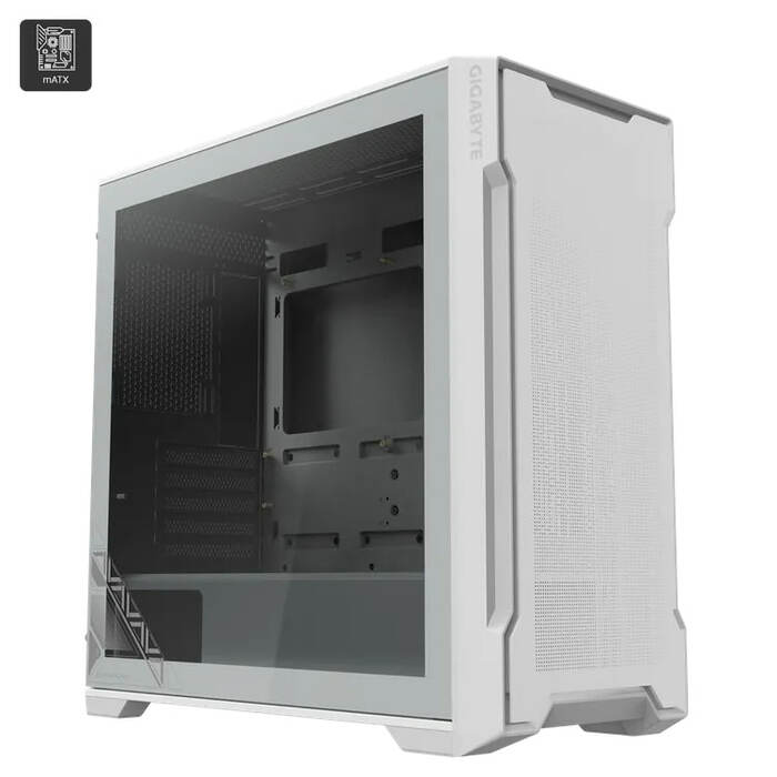 The GIGABYTE C102 Glass is a sleek micro-ATX mid-tower case built for airflow and aesthetics. It features a tempered glass side panel, pre-installed 120 mm fans, support for 360 mm radiators, a PSU shroud for clean cable management, and easy-to-remove magnetic dust filters for hassle-free maintenance.