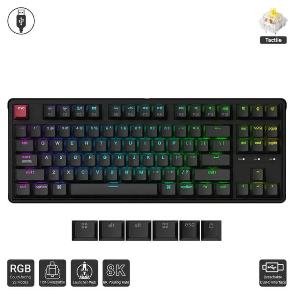The C3 Pro 8K is a wired mechanical keyboard with a classic TKL (80%) layout and many premium features like QMK support, PBT keycaps, a 8000 Hz polling rate, etc., which provides endless possibilities and a comfortable typing experience!