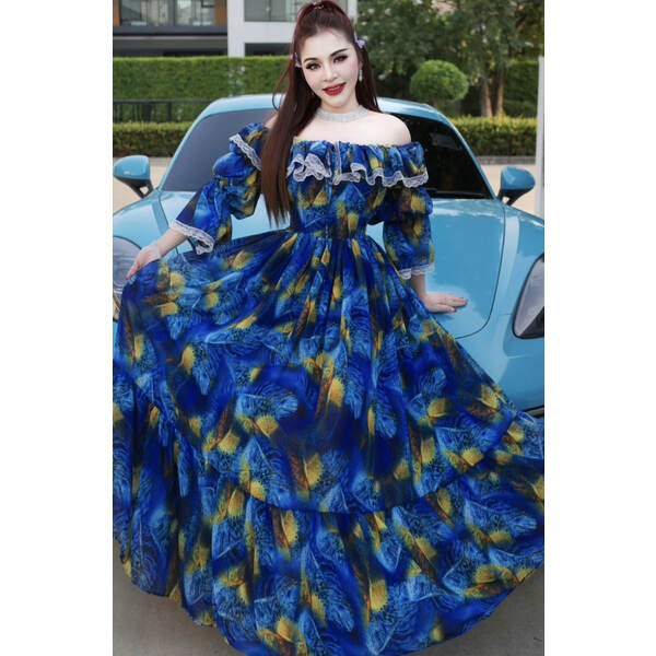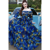 [ រ៉ូបដៃវែង | រ៉ូបដៃវែង] Chiffon Dress #Blue (#00-260) |