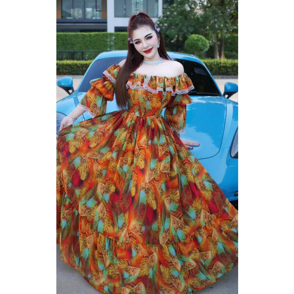 [ រ៉ូបដៃវែង | រ៉ូបដៃវែង] Chiffon Dress #Orange (#00-260) |