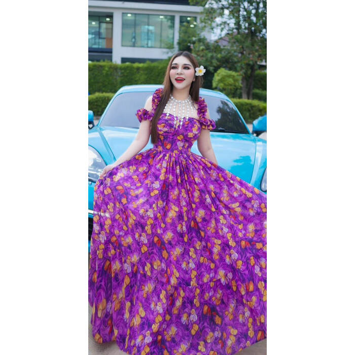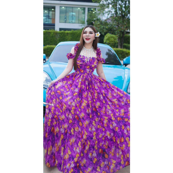 [ ខ្សែពីរ | ខ្សែពីរ] រ៉ូប Chiffon #Purple (#00-218) |