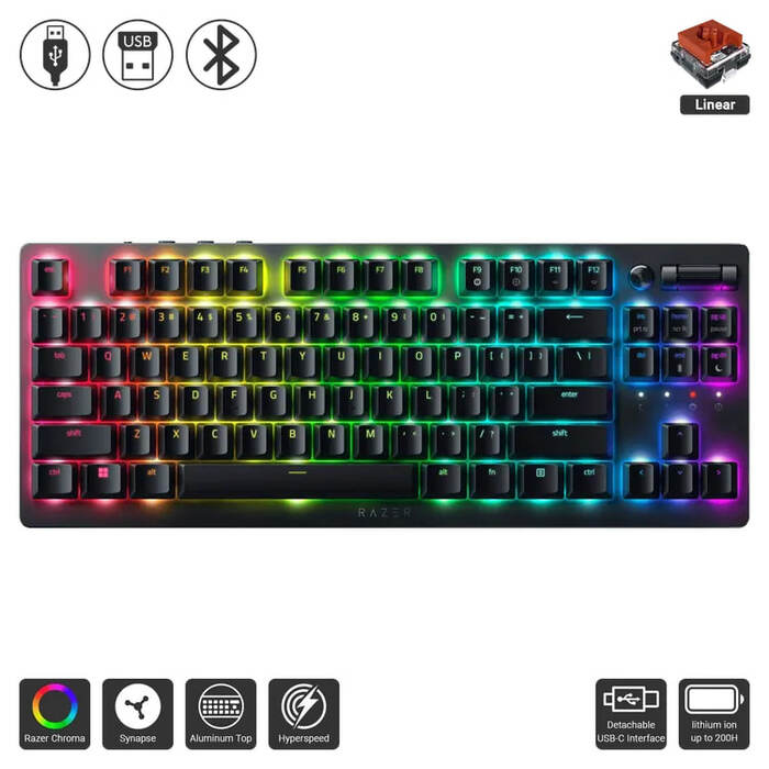 Razer DeathStalker V2 Pro TKL Wireless Gaming Keyboard: Low-Profile Optical Switches - Linear Red - HyperSpeed Wireless & Bluetooth 5.0 - Up to 200 Hrs - Ultra-Durable Coated Keycaps - Chroma RGB
