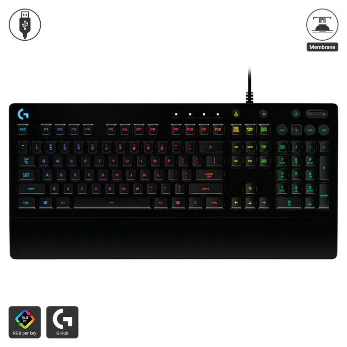 - Comfortable and durable - G213 Prodigy is a full-sized keyboard designed for gaming and productivity. The slim body is built for gamers of all levels, with a durable construction that repels liquids, crumbs and dirt for easy cleanup. An integrated Palm rest And adjustable feet Let you set your keyboard to the ideal position, so it's comfortable to use even during the longest gaming sessions.