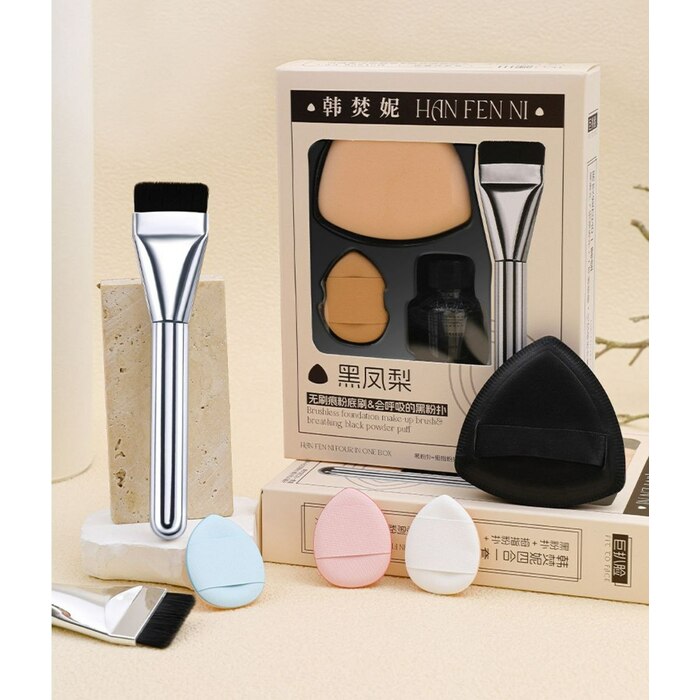 HAN FEN NI-Makeup brush and puff tools 7pcs (ឈុតជក់នឹងប៉ុងផាត់មុខ)